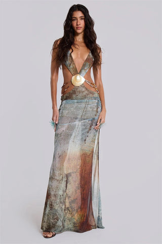 Mesh Cut-Out Backless Neck MIdi Dress