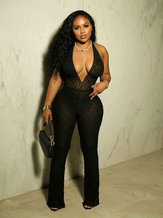 Bell Backless Jumpsuit Women Deep v-Neck